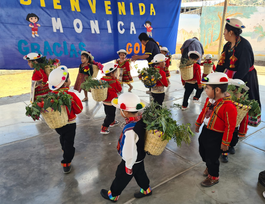 De eerste activiteit was een hartverwarmend welkom in de crèche: de leidsters hadden voor een leuk programma gezorgd, waarbij de kleintjes (1,5 tot 6 jaar) Boliviaanse dansjes uitvoerden en vroegere “leerlingen” van de crèche vertelden wat de crèche voor hen betekend had en heeft.
